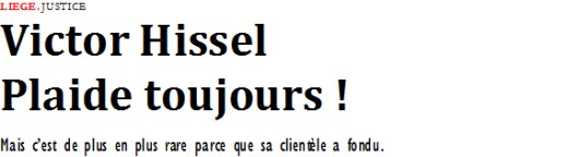 Rappel Rédact LM 2013:02:23« la source des informations de premières mains » n’était autre que le journaliste lui-même, suivant Victor Hissel à la trace, faisant feu des moindres brindilles de la vie normale de l’avocat. Comme cet autre article du journal La Meuse du 13 août 2012  qui, sous la plume de Laurence Wauters,  prétendait scandaliser les lecteurs, avec l’activité normale de Victor Hissel.