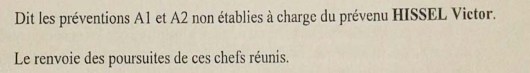 Il s’agit, comme le dit le conseil de Victor Hissel, Adrien MASSET (professeur de droit pénal à l’université de Liège) : « L’arrêt est très ferme et montre bien le manque d’éléments du dossier« (La Meuse, Liège 23.05.2018 pg6)